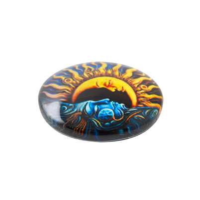 Designed to work with WoodTurningz wizard wands and jewelry creations, these 18mm glass cabochons display a sun and moon motif. The detail in each cabochon appeals to all wizards and works well with jewelry creations. These 18mm diameter cabochons are easy to install with a drop of epoxy and will enhance your project beyond expectations.