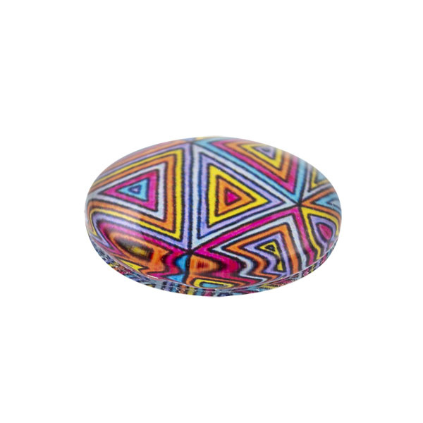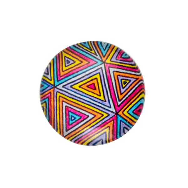 Designed to work with WoodTurningz wizard wands and jewelry creations, these 18mm glass cabochons are multi color with a colorful geometric graphic. The detail in each cabochon appeals to all wizards and works well with jewelry creations. These 18mm diameter cabochons are easy to install with a drop of epoxy and will enhance your project beyond expectations.
