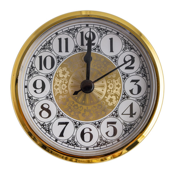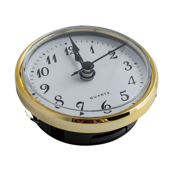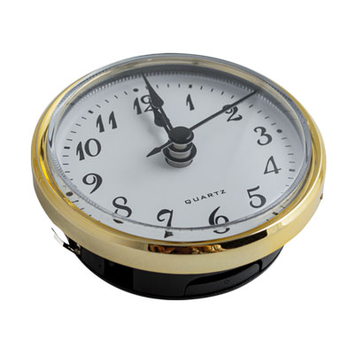 70mm/2.75" Clock - Gold - Fancy Arabic Each quartz clock insert features a solid metal case plus a real glass lens.