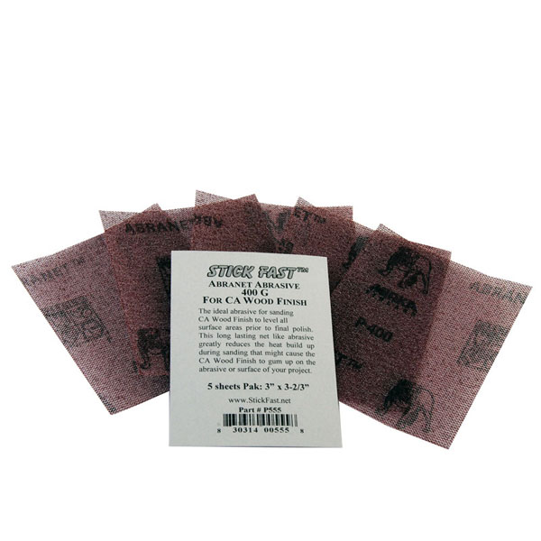 Abranet 400 Grit (5 pack) 3"x3-2/3" squares This abrasive is ideal for leveling CA Wood Finish coats ready for the final CA Polish.