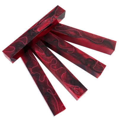 A mix of pearlized reds with black and white lines. The white and black lines help the red to vary in tone and shade.
