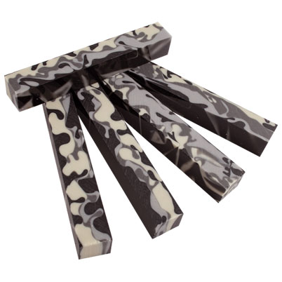 Our urban camo blank will be the perfect match for any bullet pen, but of course will work on other kits as well! The blank is a nice mix of black, light grey, dark grey, and off white in a camouflage pattern. This blank is what everyone has been asking for! For ease of turning Acrylic Acetate is hard to beat.
