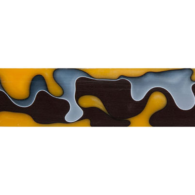 An exciting blend of Yellow, Brown, and Grey Pearl separate by thin layers of black and white.