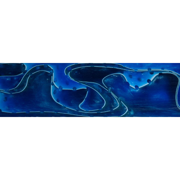 A lovely royal blue with a white perforated mesh rolling through the blank that serves to lighten or darken depending on how close or far the blue is from the white.
