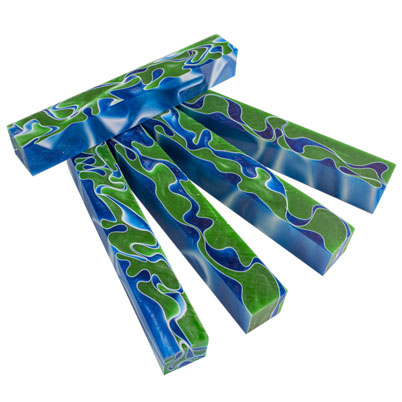 Riptide is made up of blue, green and a small amount of white rolling throughout the pen blank. The ease of turning Acrylic Acetate is hard to beat!