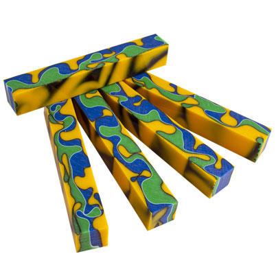 Lagoon is made up of yellow, blue, and green rolling throughout the pen blank. The ease of turning Acrylic Acetate is hard to beat!