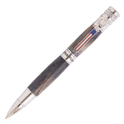 The American Patriot Pen Kit in Chrome is the perfect way to show national pride! The clip combines the American flag and handsomely cast Bald Eagle emblem which really draw your attention. The pen top features an etched U.S.A and laurel leaf stamp. "God Bless America" is etched into the pen band and really adds to the detailed look. This finish will pair beautifully with many woods or plastic blanks. This pen uses a Parker style refill and writes very smoothly.