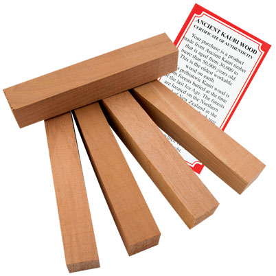Ancient Kauri is excavated from fields in New Zealand. While Kauri still grows there these Ancient logs buried for Millennia beneath the surface have been radio carbon dated back to a minimum of 30,000 to 50,000 years. It should be noted that this is the maximum age range of radio carbon dating so it is assumed that much of the wood is actually quite a bit older. Kauri is a rich tan to chocolate brown wood that is of a moderate to light density and has excellent working properties. (3/4" square x 5" long)