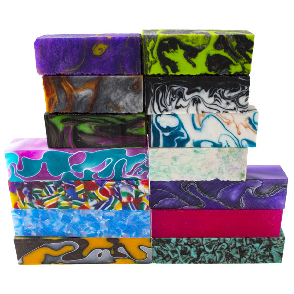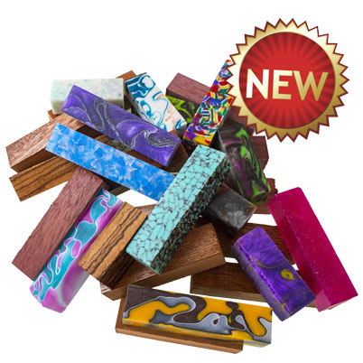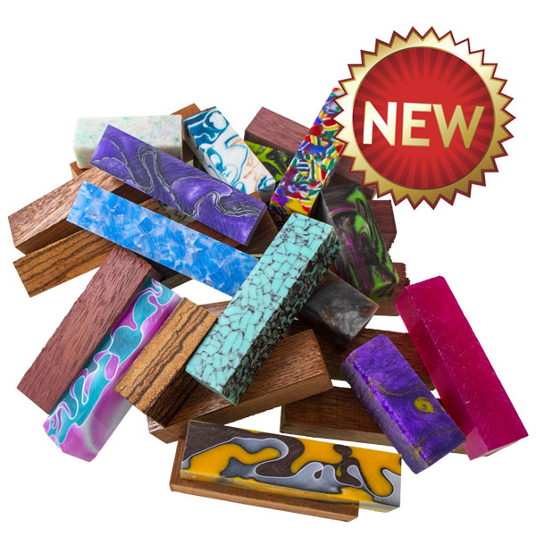 Our bargain bin is a long-time favorite with our local customers! Each grab bag includes a mix of wood, Acrylic Acetate, and various Inlace Acrylester pieces pulled from our bargain bin. These shorter cutoffs—typically 2.25" to 4"—are perfect for many single-barrel pen kits or can be combined for double-barrel projects.