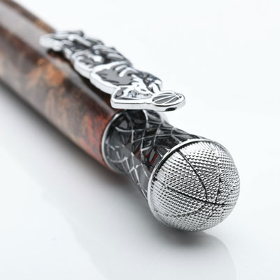 Craft the ultimate gift for basketball enthusiasts and players with a twist pen that captures the essence of the game. The pen tip showcases a collection of basketball players in action, dribbling, shooting, and dunking in a sleek silhouette. The pen clip features a player mid-jump, taking a shot. The pen end cap boasts a realistic basketball and hoop design. With various pen blank options, you can customize the pen to reflect your favorite player or team. Equipped with a smooth-writing Parker-style refill, this pen is both functional and stylish.