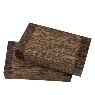 Black Palm 5 x 3 x 1" Knife Scales. Black Palm is a beautiful wood. It has black quills that run down a tan base to give a striking appearance like no other wood.