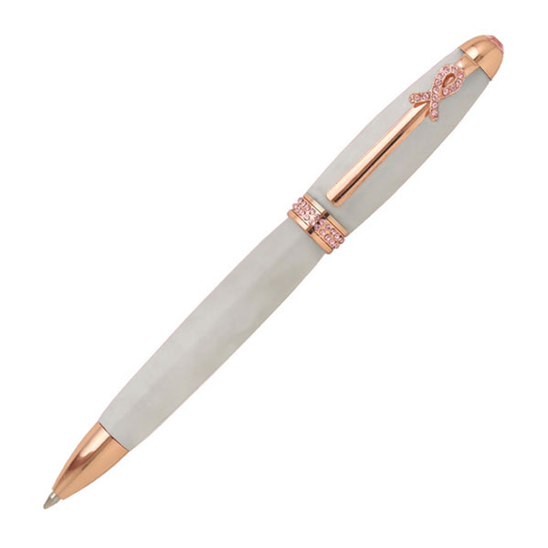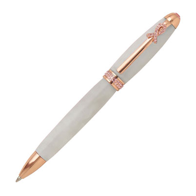 Express your solidarity and let the world know how much you care about a cure for breast cancer with this meaningful pen. Its unique design sparkles with a Swarovski® -pink crystal accented breast cancer awareness ribbon on the pen clip. More Swarovski® pink crystals around the pen band and a larger Swarovski®-pink crystal on the pen end round out this graceful design. When making this pen, you need both 8mm and 3/8 drilled blanks for the complete pen.