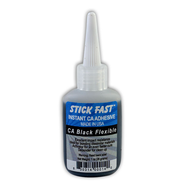 This 1 oz. black CA glue is an extremely strong bonding material. It is great for filling dark voids or accenting your project. It has a light syrup thickness. 300cps viscosity