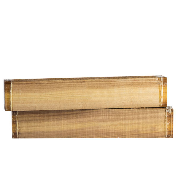 Canarywood 2 x 2 x 12". This wood ranges from a pale yellow-orange to a darker reddish brown, usually with darker streaks throughout. It does tend to darken with age, but maintains the contrasts.
