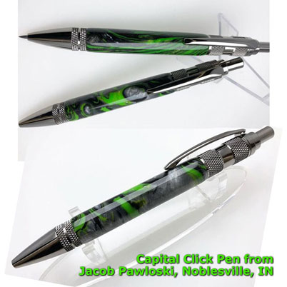 The Capital Click Pen in gunmetal is perfect for anyone and will be sure to fit your everyday life. Solidly-crafted, this pen has knurling (similar to our tactical pen) on both upper end as well as surrounding the nib making your pen easy-to-grip and write with. Easy-to-make with a single 3/8 inch tube and includes a smooth writing Parker style refill.