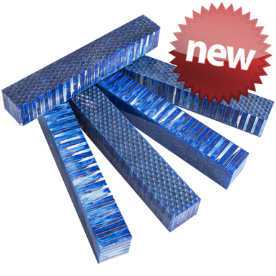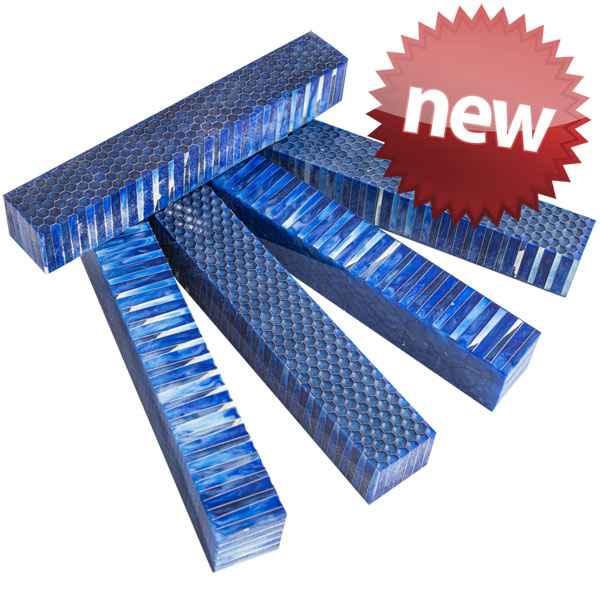 This blank is pretty Blue and Silver. Our Combz blanks are a combination of beautiful two-tone pearlescent resin and aluminum honeycomb. They are a really cool look when finished!