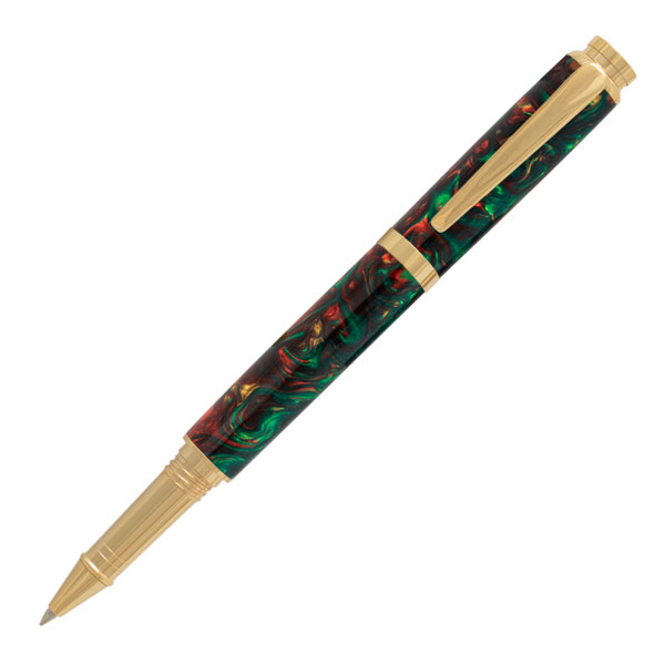 Our Commander Rollerball in 24kt Gold is the perfect pen with elegant and contemporary styling from top to bottom. The chic cap posts on the rear of the pen and has wide threads to prevent cross-threading. This pen will show off your best work! (Shown here on an Inlace Acrylester PBIA135 pen blank)
