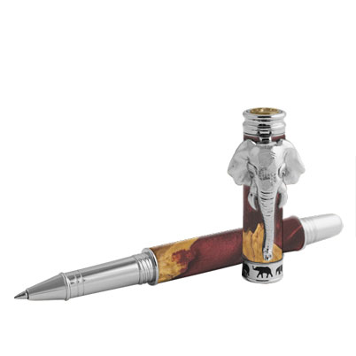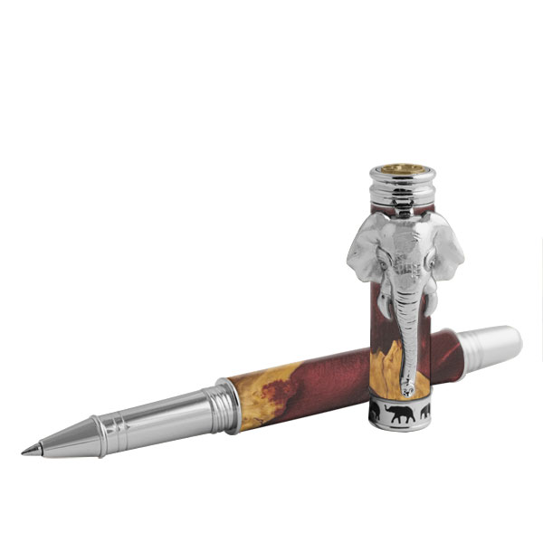 All big things start small! Our new Elephant Rollerball Pen Kit in Chrome will make a huge impression and likely bring good luck for the recipient! The majestic head of an elephant graces the top with the trunk forming the clip. The center band features a family of elephants marching around the perimeter. The cap posts on the rear of the pen which features wide threads to prevent cross-threading.