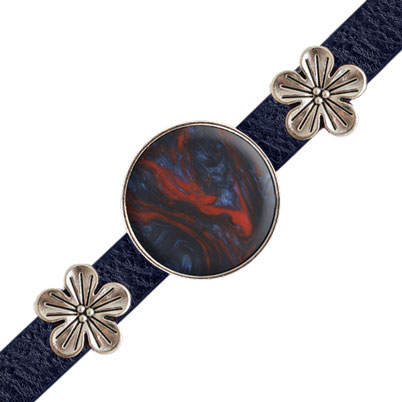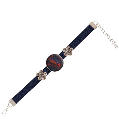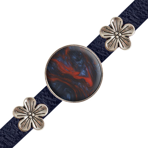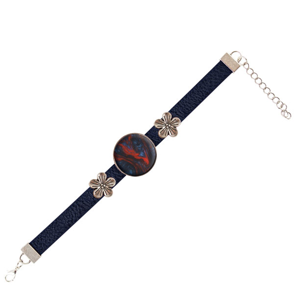 These leatherette bracelets are a nice way to combine your artwork with your favorite accent along the sides. They are about 7.5" from clasp to end of the strap. Then, there is a 2" extension chain on the end for adjustments.
