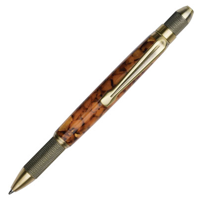 The GT2 in Antique Brass boasts a modern and polished appearance, characterized by its streamlined industrial design and minimalist aesthetic. The knurled diamond pattern on the tip and end cap has been meticulously crafted for a comfortable grip and an enjoyable writing experience. Its smooth writing performance is made possible by a Parker-style refill.