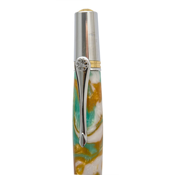 The Gallant Twist Pen is a super easy-to-turn single-barrel pen kit! It is an elegant two-toned gunmetal and chrome combination. It has simple, tasteful accent detail on the center band, pen clip as well as the end of the cap. The Gallant pen uses a parker refill and gives the user a smooth writing experience.