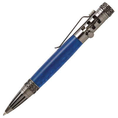 Gearshift Pen Kit in gunmetal is great for any car enthusiast! The gear shift is etched with a five-speed pattern and the it also features 2 bands of tire tread. In addition, the clip simulates a crowbar attached to the body with two small screws. (Uses the Parker style refill.)