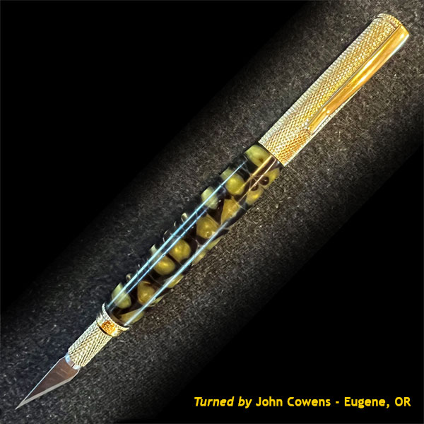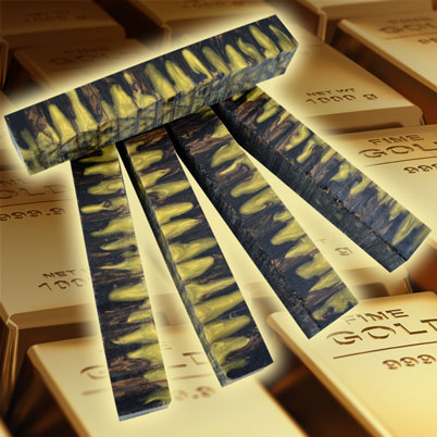 This great color will be turning heads and will look great on a variety of pen platings! It is made up of Cupreous Brown and a Goldish Green. This cellular composite is an Inlace Acrylesterâ„¢ variant with enhanced color effects and a truly unique look. The organic mesh used to structure the blank offers improved workability and outrageous color fusion! (blanks are 3/4" square by 5")