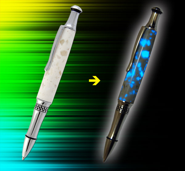 Do you love a starry, starry night? Brighten up the darkness with WoodTurningz Blue Nova pen blank! Turn this glow-in-the-dark acrylic-simulated stone blank as you would any acrylic blank using sharp tools. Assemble your pen and watch it cast a blue glimmer in the dark!
