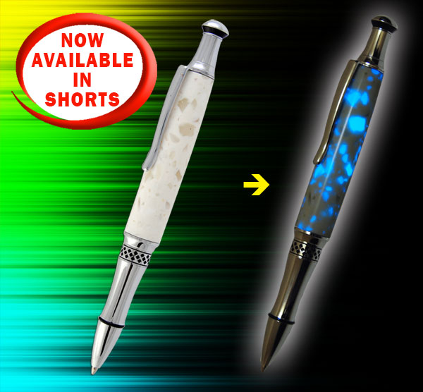 Do you love a starry, starry night? Brighten up the darkness with WoodTurningz Blue Nova pen blank! Turn this glow-in-the-dark acrylic-simulated stone blank as you would any acrylic blank using sharp tools. Assemble your pen and watch it cast a blue glimmer in the dark!