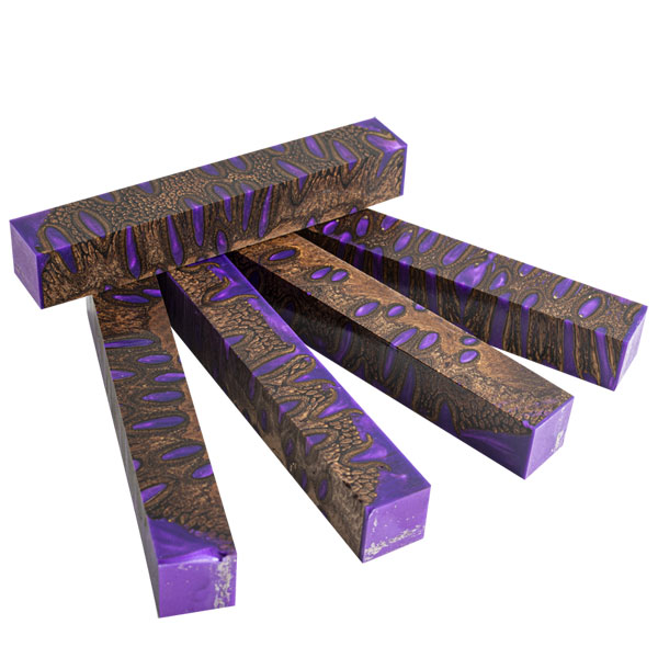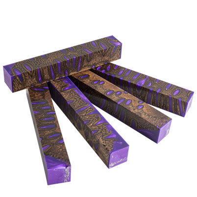 Hybridz pen blanks are meticulously hand-crafted from stabilized Banksia Pod and cast in various colored resins. The high-pressure process penetrates the pores and voids in the pod. You’ll find these blanks easy to turn as this Alumilite resin limits chip out. No two blanks are alike. Note: As with most burls, some small voids may need to be filled with CA glue. We also recommend finishing with CA glue for the best results.