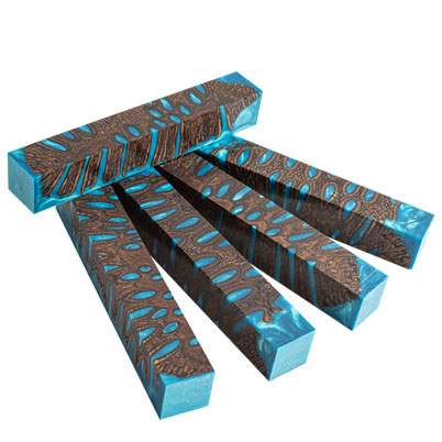Hybridz pen blanks are meticulously hand-crafted from stabilized Banksia Pod and cast in various colored resins. The high-pressure process penetrates the pores and voids in the pod. You’ll find these blanks easy to turn as this Alumilite resin limits chip out. No two blanks are alike. Note: As with most burls, some small voids may need to be filled with CA glue. We also recommend finishing with CA glue for the best results.