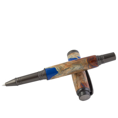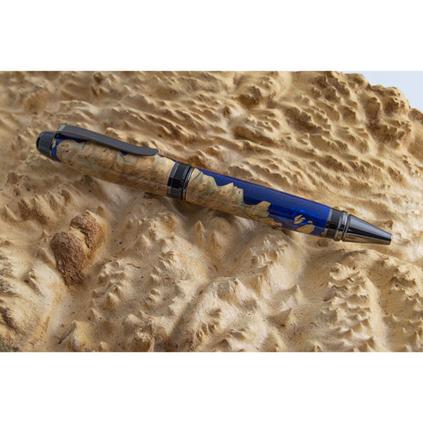 This Hybridz blank in blue is meticulously hand-crafted from Australian Mallee Burl and cast in an opaque-colored Alumilite resin. The high-pressure process penetrates the pores and voids in the burl. You’ll find these blanks easy-to-turn as this special type of resin limits chip out. No two blanks are alike. For best results, finish with CA glue. (Note: As with most burls some small voids my need to be filled with CA glue.)