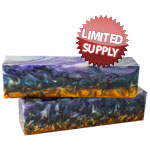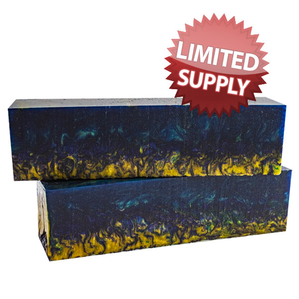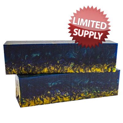 These limited Batch Spindle blanks are a dynamic color made up of dark blue, teal blue, green, and yellow swirls. These spindle blanks are 1.5" square by 6" long and will work well for all of your larger projects.