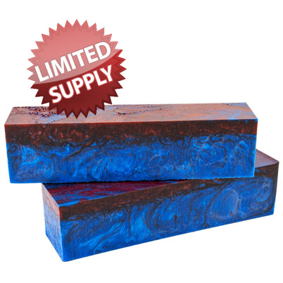 These blue and burgundy spindle blanks are 1.5" square by 6" long and will work well for all of your larger projects. **1.5" x 1.5" x 12" spindles in this color are also available. If interested, please call 888-736-5487.**