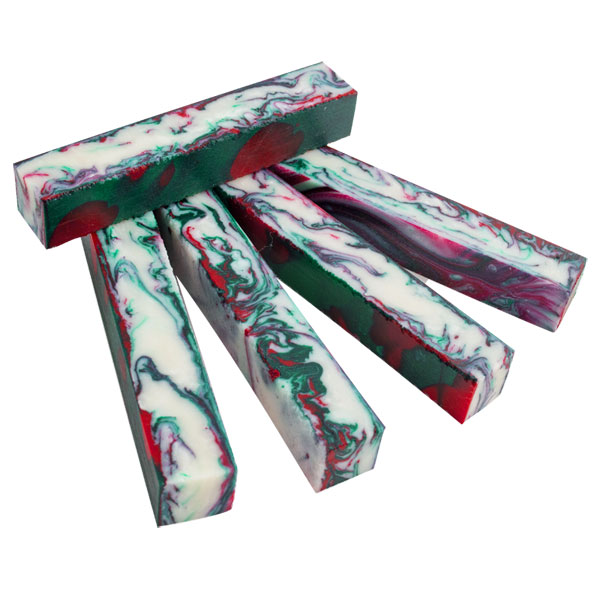 Perfect for the holiday season...Inlace Acrylester Pen Blank #33 - Holiday Swirl. This pen blank is sized at 3/4" square x 5".