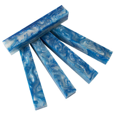 Inlace #36 - Blue & White is a made up of swirled shades of blue and white. This pen blank is sized at 3/4" square x 5".