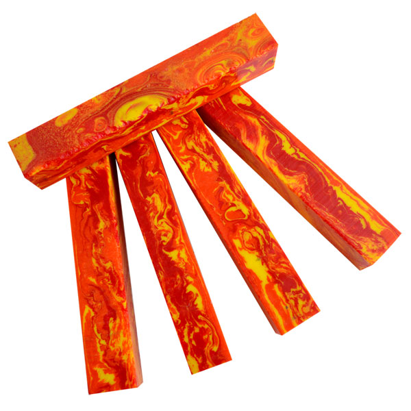 Inlace 54 - Inferno is a nice mix of red, yellow and orange! Give this color a try today - it is hot, hot, hot!Blanks are 3/4" square by 5" long.