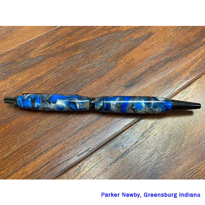 Inlace Acrylester #121 - Blue Damascus is made up of black, bright blue, and silver swirls. It is a great blend of colors that are perfect for anyone! Blanks are sized at 3/4" x 3/4" x 5".
