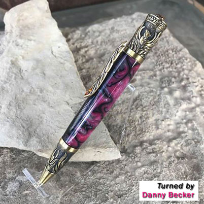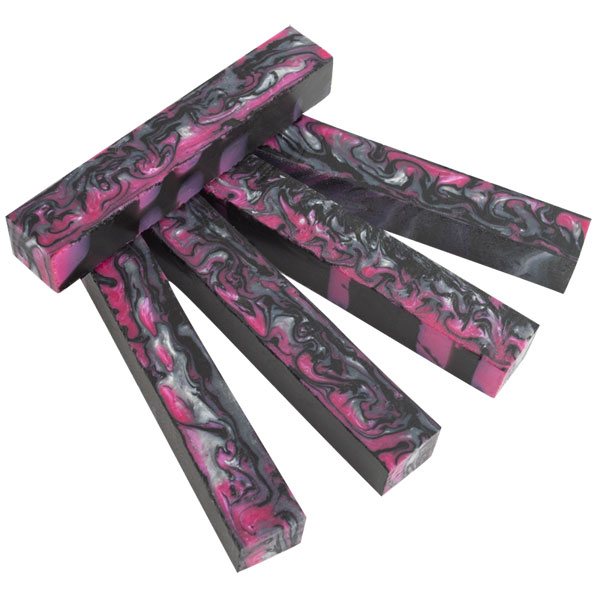 Inlace Acrylester #123 - Pink Damascus is made up of black, pink, and silver swirls. It is a great blend of colors that are perfect for anyone! Blanks are sized at 3/4" x 3/4" x 5".