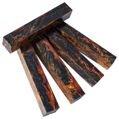 Inlace Acrylester #149 - Smoldering Embers is a gorgeous color made up of Black Olive and Bronze swirls. WoodTurningz is proud to manufacture Inlace Acrylester Blanks! These blanks look incredible when finished and have amazing depth when viewed in the light! Blanks are sized at 3/4" x 3/4" x 5".