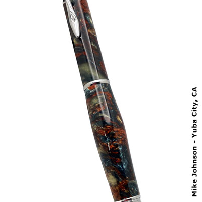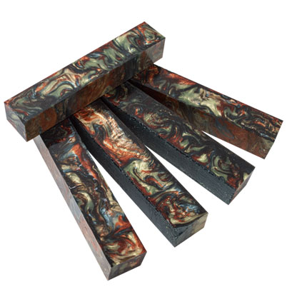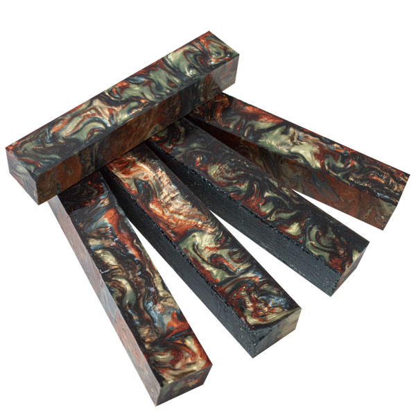 Inlace Acrylester #151 - Deep Woods is a gorgeous color made up of green, blue, copper, and black olive swirls. WoodTurningz is proud to manufacture Inlace Acrylester Blanks! These blanks look incredible when finished and have amazing depth when viewed in the light! Blanks are sized at 3/4" x 3/4" x 5".