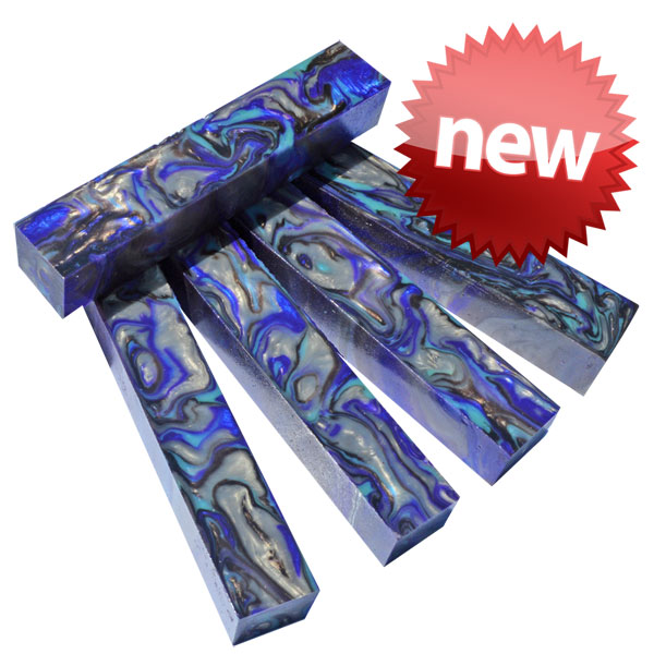 Inlace Acrylester #152 Sailfish is a gorgeous color that will go with almost any plating. It is comprised of whitish blue pearl, turquoise, dark brown, and electric blue swirls. WoodTurningz is proud to manufacture Inlace Acrylester Blanks! Blanks are 3/4" square by 5" long.