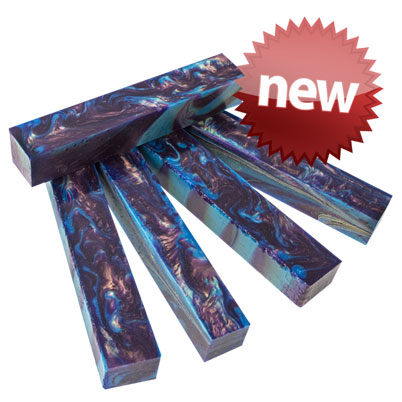 PBIA153 Northern Lights is a beautiful pen blank made up of blue, gold, and purple swirls. This color catches the light when turned and are simply awesome! WoodTurningz is proud to manufacture Inlace Acrylester Blanks!