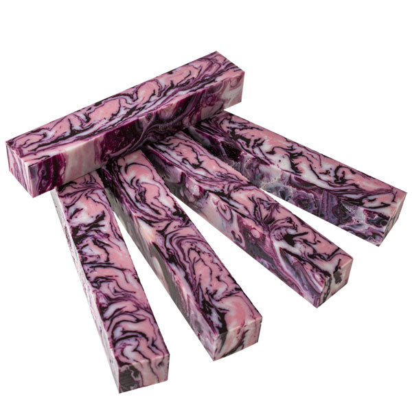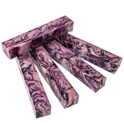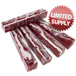 Inlace Acrylester #154 - Sweetheart is a really pretty pen blank made up of light pink, white pearl and burgundy swirls. WoodTurningz is proud to manufacture Inlace Acrylester Blanks! These blanks look incredible when finished and have amazing depth when viewed in the light!