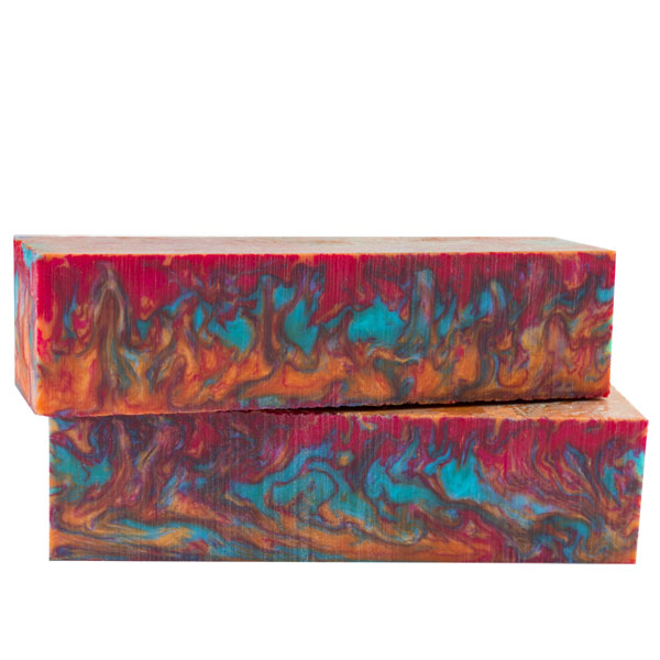 Inlace Acrylester #116 Tie-Dye is a nice mix of orange, turquoise, and red! Give this cool color a try today! These spindle blanks are 1.5" square by 6" long and will work well for all of your larger projects.
