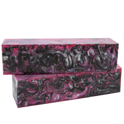 #123 Inlace Acrylester Spindle Pink Damascus is made up of black, pink, and silver swirls. It is a great blend of colors that are perfect for anyone! Sized at 1.5 x 1.5 x 6"
