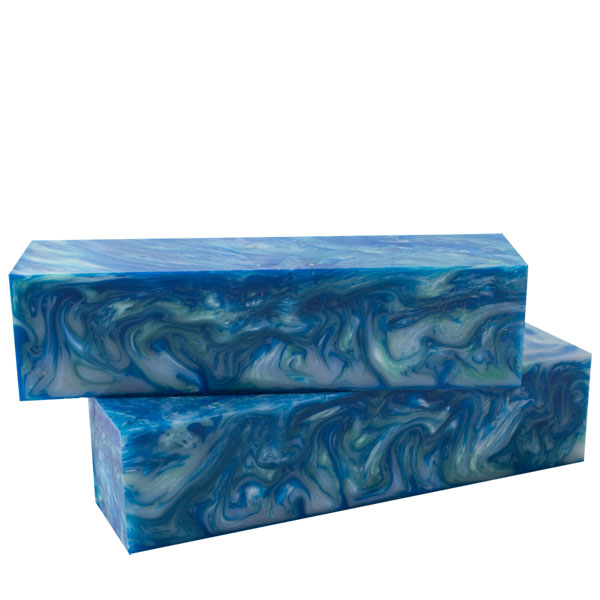 Inlace Acrylester #144 - Alpine Frost is a beautiful color made up of blue and mint green swirls. WoodTurningz is proud to manufacture Inlace Acrylester Blanks! These spindle blanks look incredible when finished and have amazing depth when viewed in the light!