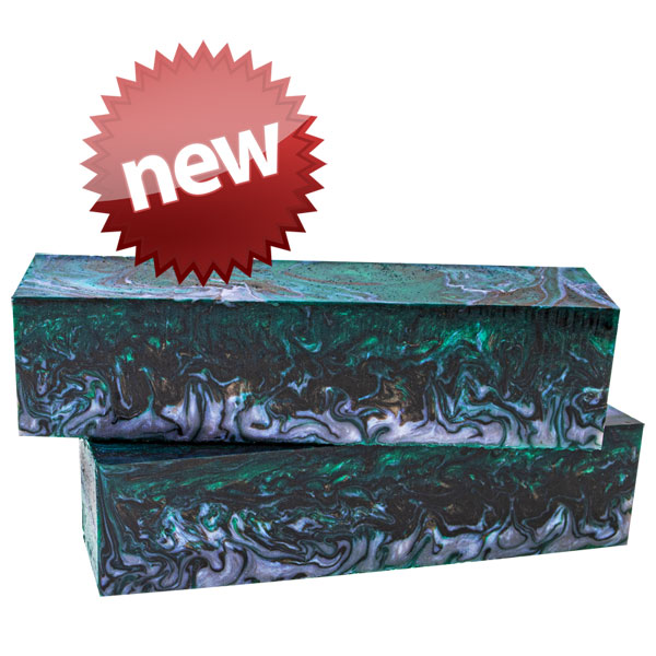 Inlace Acrylester #148 - Moss Agate is a gorgeous color made up of Emerald green, Black Olive, and Blue Silver swirls. WoodTurningz is proud to manufacture Inlace Acrylester Blanks! These spindle blanks look incredible when finished and have amazing depth when viewed in the light!