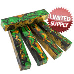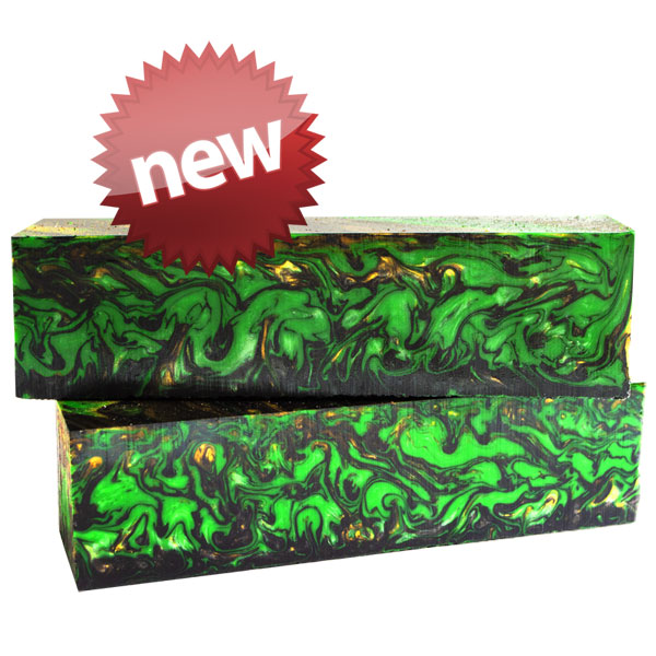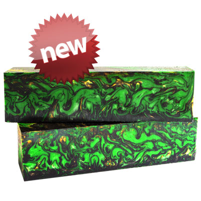 Inlace Acrylester #159 - Pot of Gold is a great mix of gold, green and black olive swirls. WoodTurningz is proud to manufacture Inlace Acrylester Blanks! These blanks look incredible when finished and have amazing depth when viewed in the light! Blanks are sized at 1.5 x 1.5 x 6".