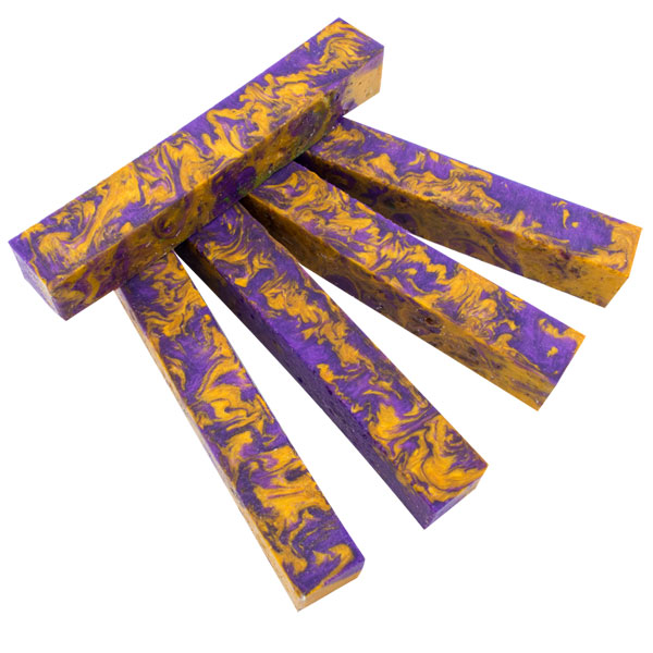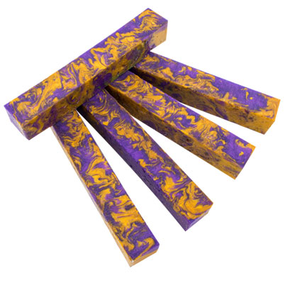 Elegance is a nice mix of gold and purple! Blanks are 5/8" square by 5" long.